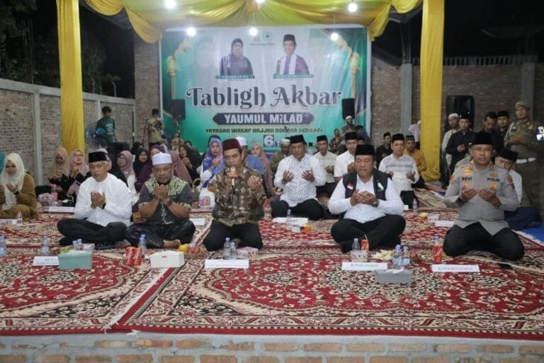 Bupati Asahan, Taufik Zainal Abidin, S.Sos., M.Si., menghadiri peringatan Milad ke-6 Yayasan Wakaf Hajjah Rohana Berbagi di Jalan William Iskandar, Mutiara Kisaran, Minggu malam Minggu 9 November 2025.