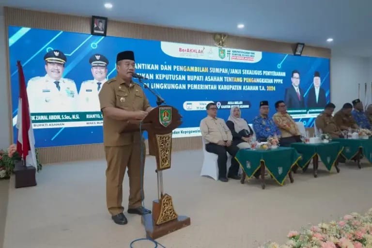 Bupati Asahan, Taufik Zainal Abidin, S.Sos., M.Si secara resmi mengukuhkan sekaligus mengambil sumpah/janji 495 Pegawai Pemerintah dengan Perjanjian Kerja (PPPK) Formasi Tahun Anggaran 2024 di Aula Melati Kantor Bupati Asahan,Selasa 30 September 2025.