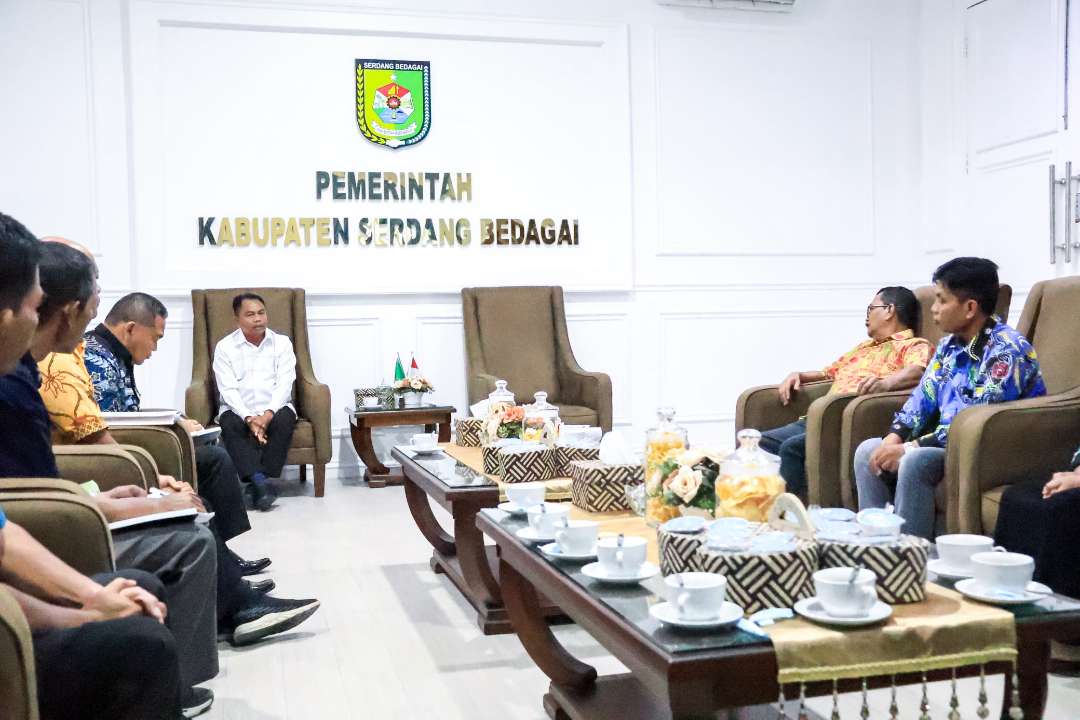 Bupati Serdang Bedagai (Sergai) H. Darma Wijaya menerima kunjungan silaturahmi jajaran Kontak Tani Nelayan Andalan (KTNA) Kabupaten Sergai di ruang kerjanya, Komplek Kantor Bupati Sergai, Sei Rampah, Kamis 23 April 2026.