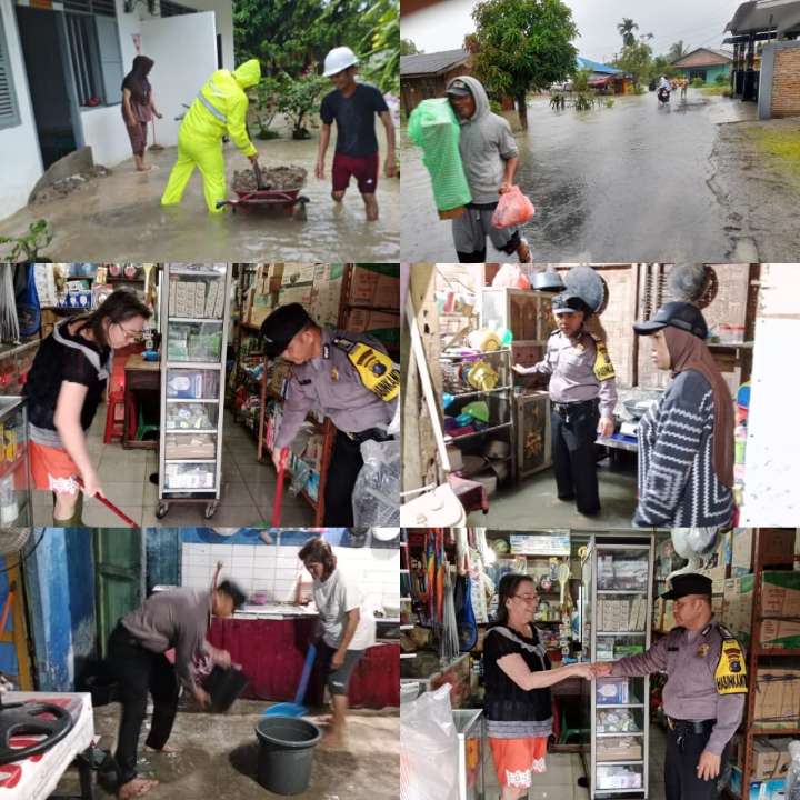 Dilaporkan di sejumlah titik, para Bhabinkamtibmas Polsek Jajaran memberikan bantuan langsung kepada warga yang membutuhkan, membantu kendaraan yang melewati banjir, menguras genangan air yang memasuki Rumah, Toko atau Kios masyarakat.