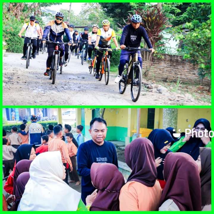 Di sela-sela kayuhan sepedanya, Bupati dan Wabup menyempatkan singgah di SDN 104298 Desa Simpang Empat untuk meninjau pelaksanaan program Makan Bergizi Gratis (MBG).