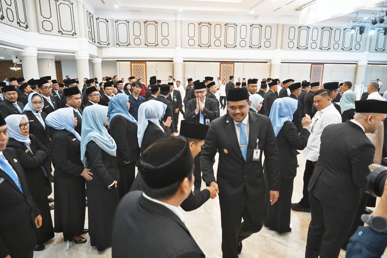 Gubernur Sumatera Utara, Muhammad Bobby Nasution, melantik 177 pejabat eselon III dan IV di lingkungan Pemerintah Provinsi Sumatera Utara (Pemprovsu). Pelantikan berlangsung di Aula Raja Inal Siregar Kantor Gubernur, Rabu (8/10/2025).