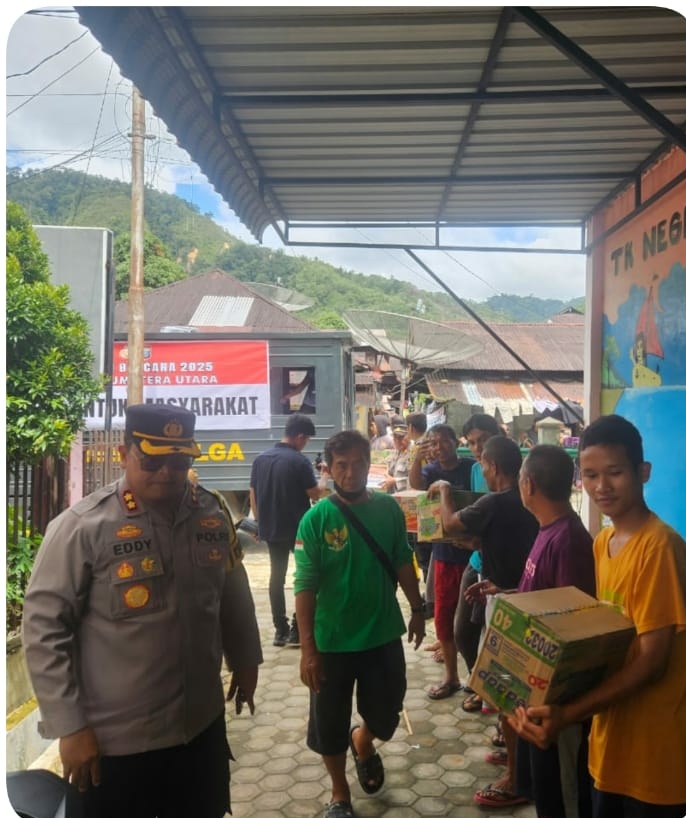 Kepolisian Resor (Polres) Sibolga menyalurkan Bantuan Sosial (Bansos) kepada masyarakat yang terdampak bencana alam banjir dan tanah longsor di Kota Sibolga, yang dipimpin langsung oleh Kapolres Sibolga, AKBP Eddy Inganta, S.H., S.I.K., M.H., pada Senin (8/12/2025) pagi.