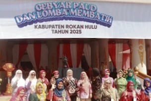 Suasana ceria mewarnai halaman Kantor Bupati Rokan Hulu (Rohul) pada Sabtu 4 Oktober 2025 pagi, ribuan anak PAUD, guru, dan orang tua mengikuti Gebyar PAUD dan Lomba Membatik Tingkat Kabupaten Rokan Hulu.