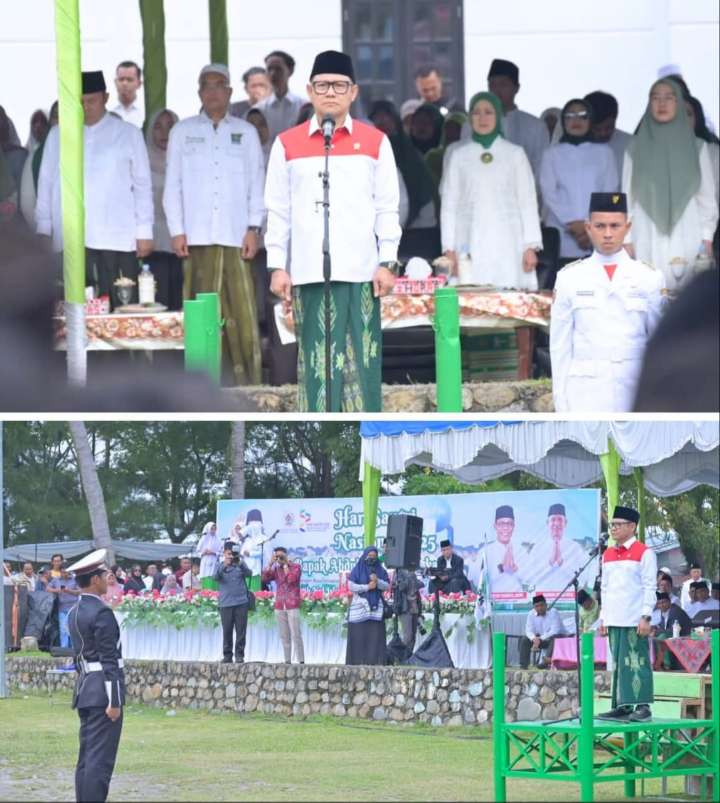 Menteri Koordinator (Menko) Bidang Pemberdayaan Masyarakat Republik Indonesia Dr. (HC).Drs. Abdul Muhaimin Iskandar, M.Si bertindak selaku Inspektur Upacara pada Apel Akbar Peringatan Hari Santri Nasional Tahun 2025, yang dilaksanakan di Tugu Titik Nol Km Islam Di Nusantara yang berada di Kecamatan Barus, Kabupaten Tapanuli Tengah (Tapteng), pada Rabu (22/10/2025).
