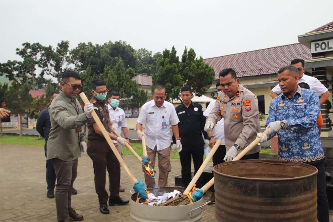 “Barang bukti yang dimusnahkan hari ini sebanyak 23.567 gram, setelah sebelumnya disisihkan untuk pemeriksaan laboratorium dan pembuktian di persidangan,” ujar Wakapolres.