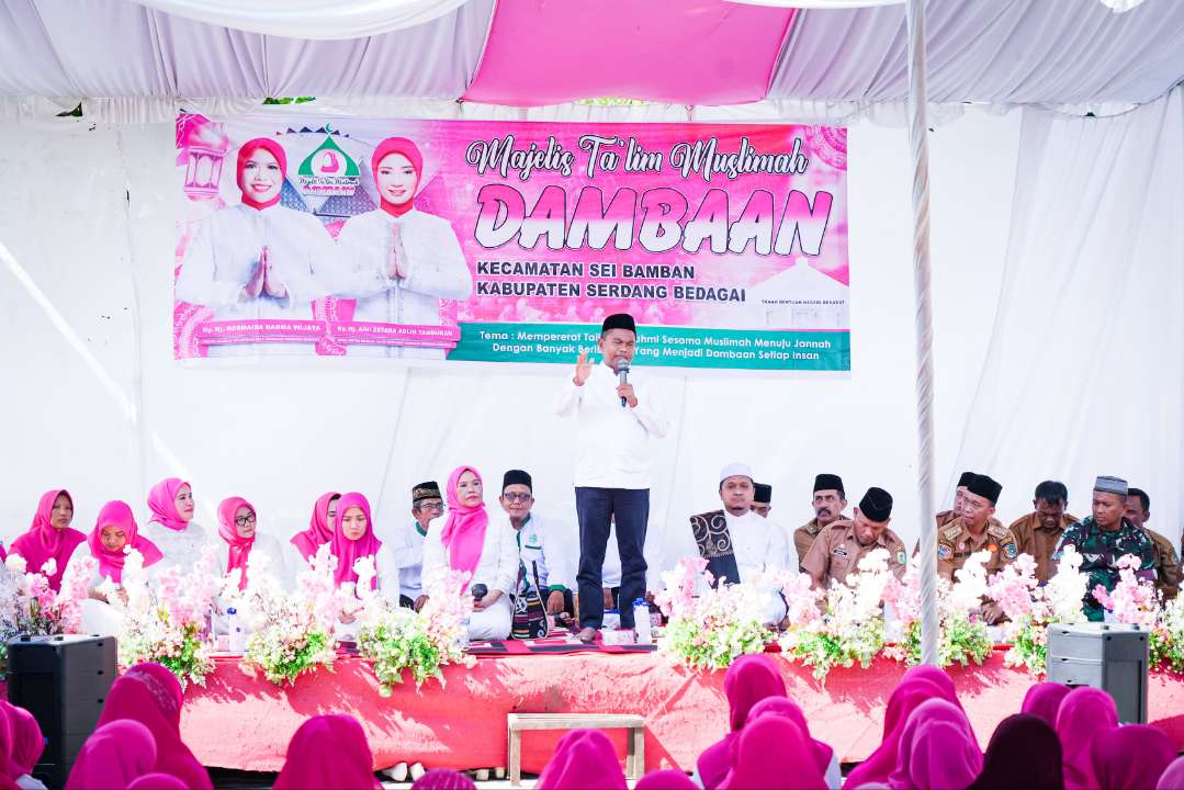 Bupati Serdang Bedagai (Sergai), Darma Wijaya, hadir langsung di tengah ratusan jamaah Majelis Taklim Muslimah Dambaan (MTMD) Kecamatan Sei Bamban. Kegiatan ini digelar di Masjid Baiturrahman, Dusun XVI Kampung Samben, Selasa 7 April 2026.