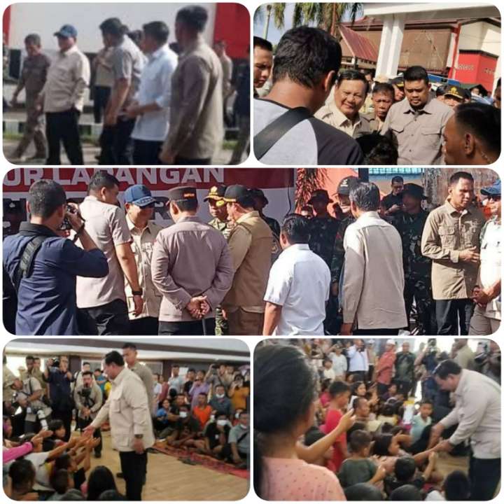 Presiden Prabowo Bersama Panglima TNI, Kapolri, Seskab dan Menteri PUPR Tinjau Posko Pengungsian di GOR Pandan