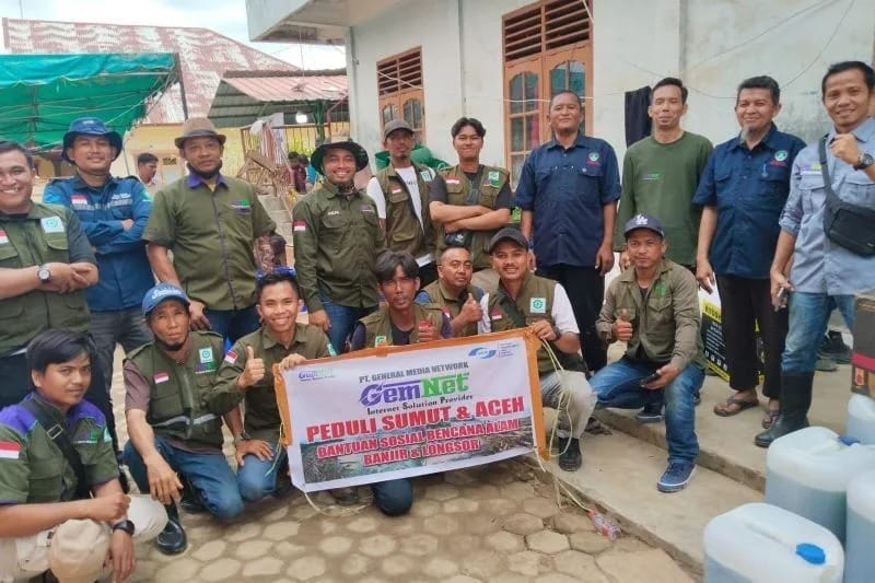 Gemnet Turun langsung menyalurkan 76 jenis bantuan kepada korban masyarakat Aceh Tamiang yang terkenak banjir.