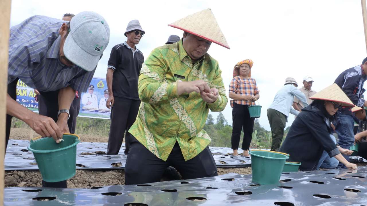 Pemerintah Kabupaten Samosir mempercepat pengembangan komoditas bawang putih sebagai bagian dari penguatan ketahanan pangan nasional. Bupati Samosir, Vandiko T. Gultom, turun langsung ke lahan pertanian di Desa Maduma, Kecamatan Simanindo, untuk melakukan penanaman bersama kelompok tani, Kamis (30/4).