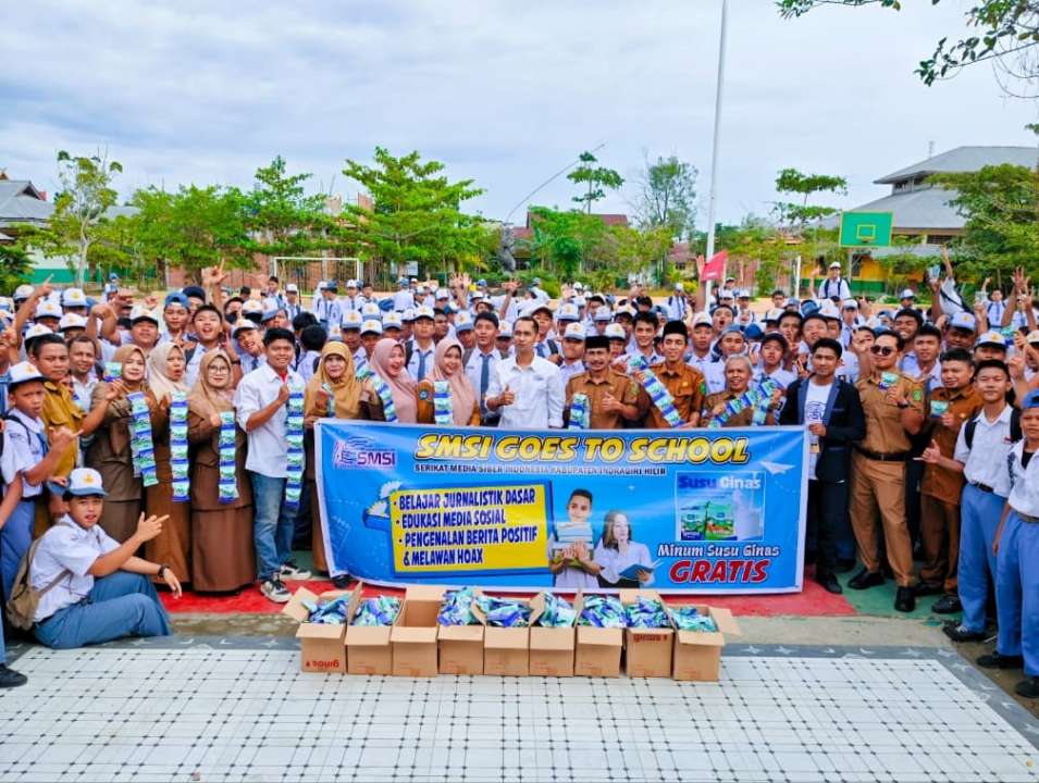 Realisasikan program perkenalan Perusahaan Pers ke sekolah, Serikat Media Siber Indonesia (SMSI) Kabupaten Indragiri Hilir (Inhil) angkat tema “SMSI Goes To School”.