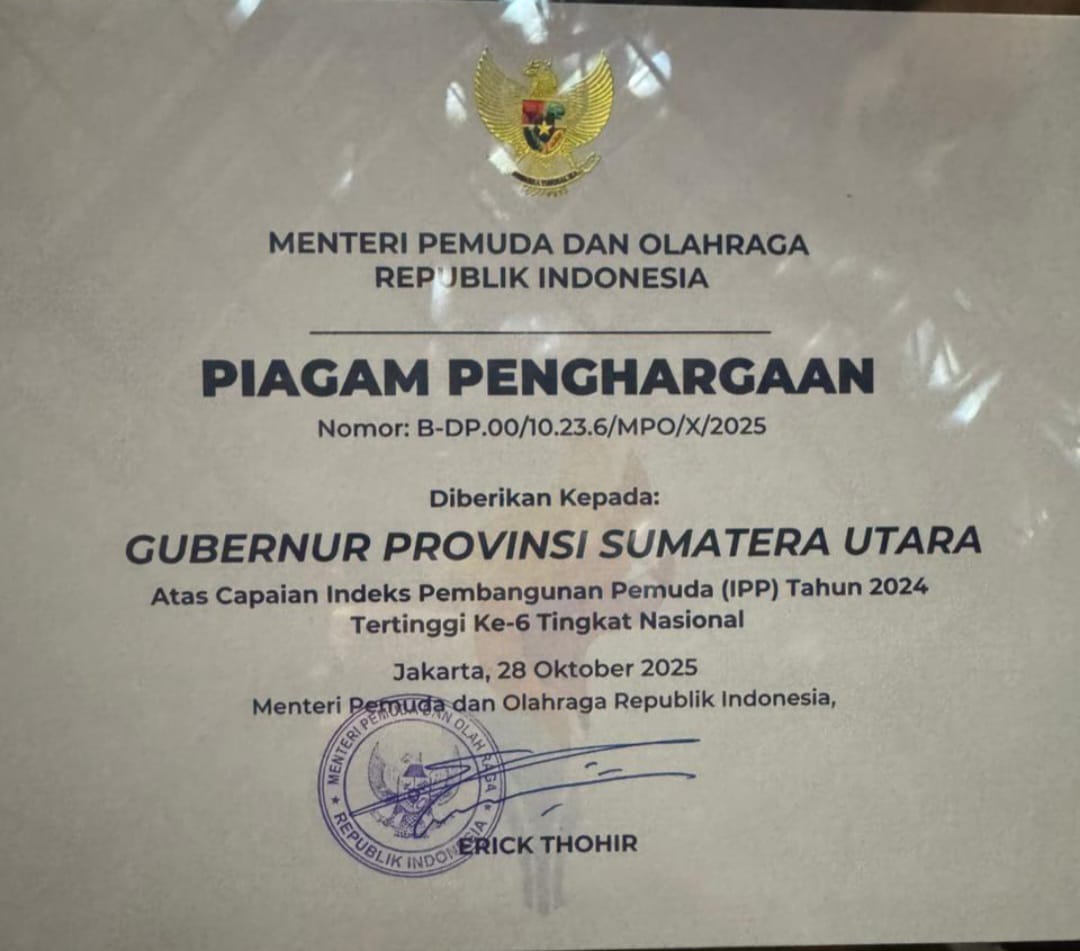 Dengan dua peringkat prestisius ini, Sumut dinilai berhasil memperkuat fondasi kebijakan kepemudaan sebagai bagian dari program Sumut Hebat yang dicanangkan Bobby Nasution — menyiapkan generasi muda unggul untuk masa depan yang berdaya dan berkarakter.(MN.01)***