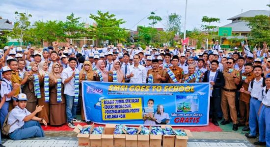 SMSI Inhil Gelar “Goes To School” di SMKN 2 Tembilahan, Bagikan Susu Gratis dan Edukasi Media