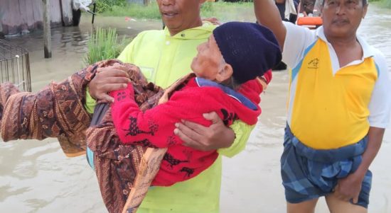 Ditengah Genangan Air, Aiptu Hendra Evakuasi Seorang Nenek