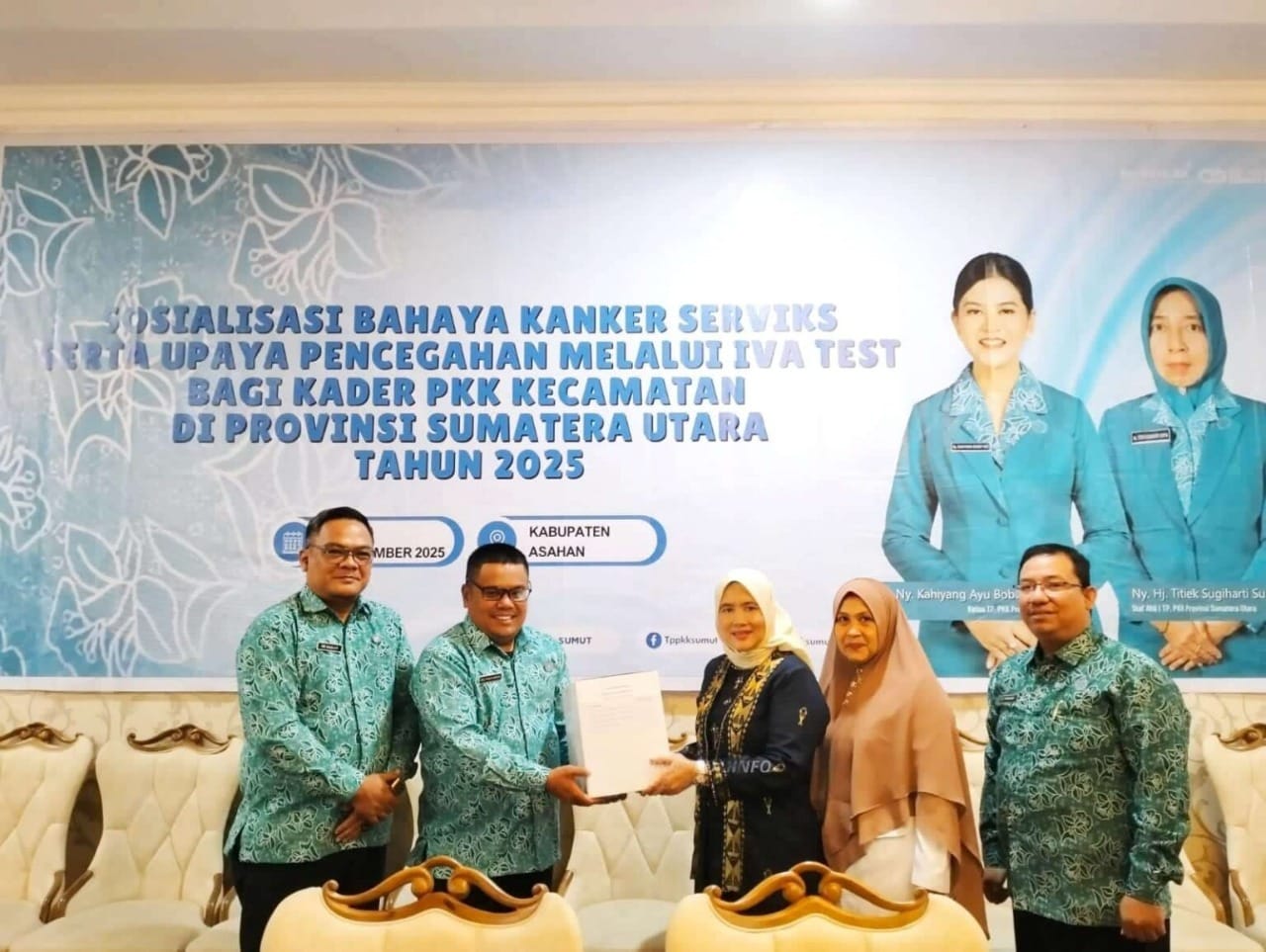 Tim Penggerak Pemberdayaan dan Kesejahteraan Keluarga (TP PKK) Provinsi Sumatera Utara menyelenggarakan kegiatan “Sosialisasi Bahaya Kanker Serviks serta Upaya Pencegahan Melalui IVA Test bagi Kader PKK Kecamatan se-Sumatera Utara” di Ruang Hijau Rumah Dinas Bupati Asahan,Rabu(26/11/2025).