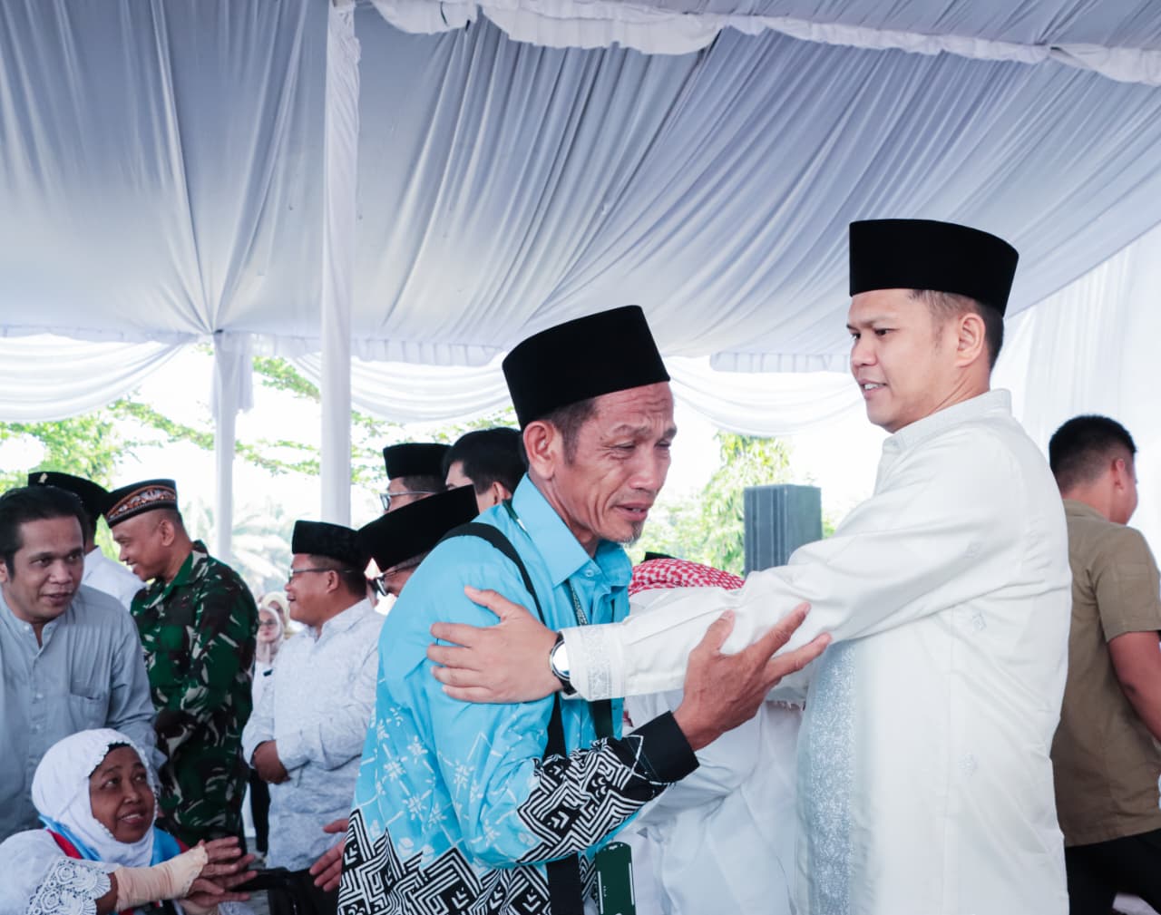 Hadir mendampingi dalam acara tersebut, Ketua TP PKK Sergai Ny. Hj. Rosmaida Darma Wijaya, Staf Ahli I TP PKK Ny. Hj. Aini Zetara Adlin Tambunan, unsur Forkopimda Sergai, Kakan Kemenag Sergai H. Azrul Aswan Sirait, S.Hi, M.M, para Asisten, jajaran Kepala OPD, serta keluarga para jamaah.