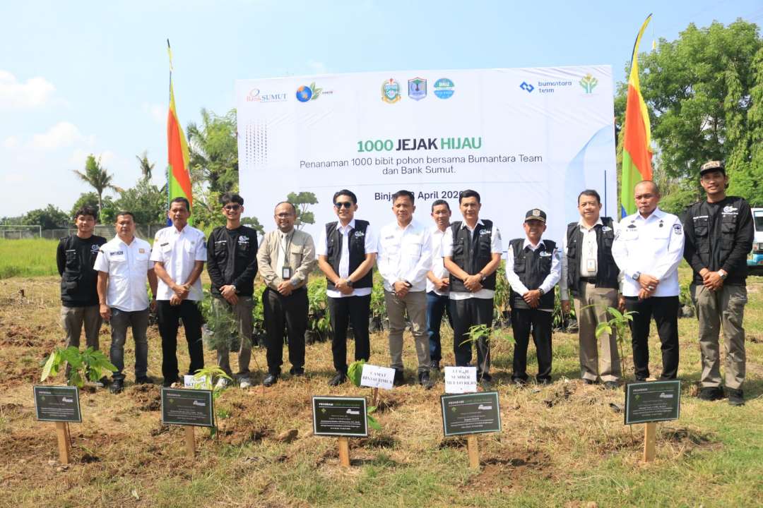 Mewakili Wali Kota Binjai, Wakil Wali Kota Binjai Hasanul Jihadi, S.H., S.Sos., M.Kn., menghadiri sekaligus membuka kegiatan “1000 Jejak Hijau” berupa penanaman 1.000 bibit pohon bersama Bumantara Team dan Bank Sumut di Jalan Dr. Wahidin No. 163–167, Kelurahan Sumber Mulyo Rejo, Kecamatan Binjai Timur, Rabu (22/4).