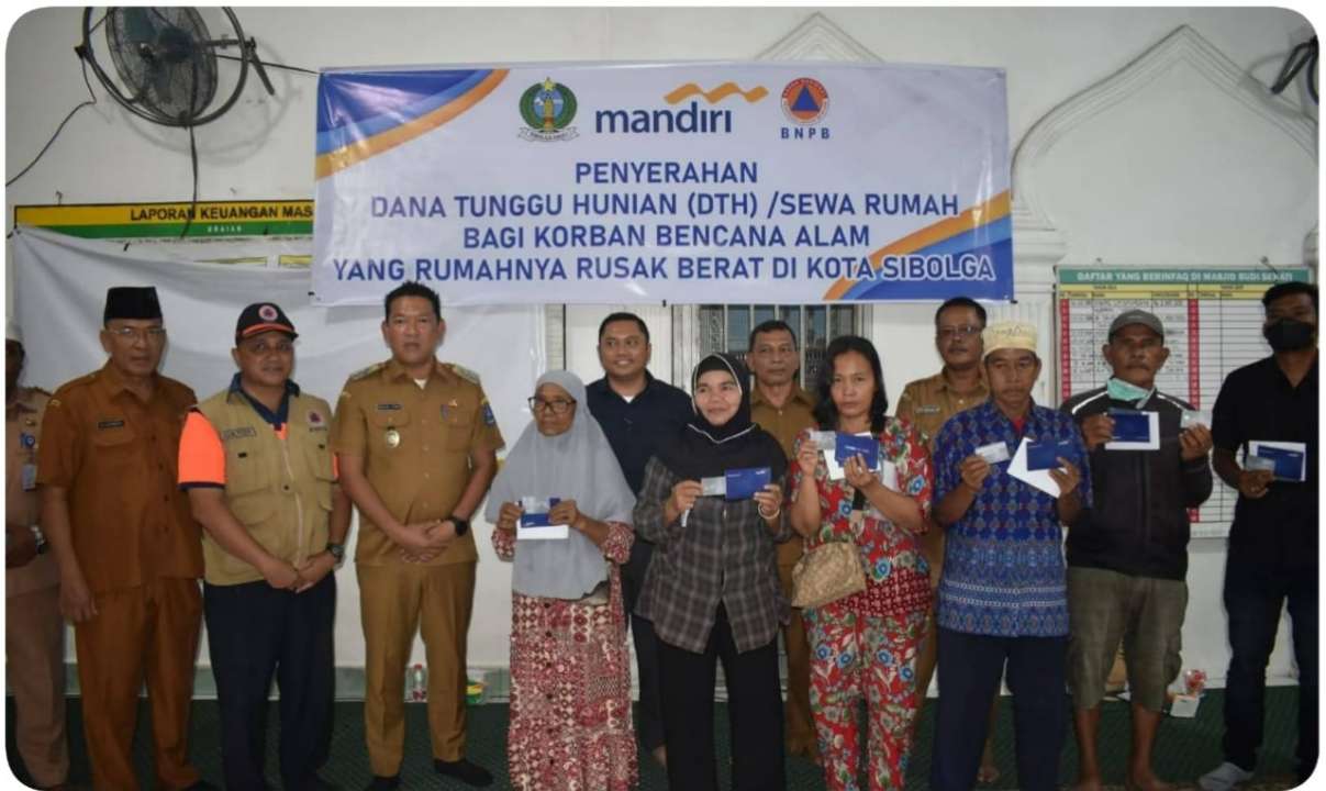 Wakil Wali Kota Sibolga, Pantas Maruba Lumban Tobing, bersama JFT Analis Kebencanaan Ahli Madya BNPB, Gatot Satria Wijaya, menyalurkan Dana Tunggu Hunian (DTH) kepada 34 Kepala Keluarga (KK) korban bencana alam yang mengalami kerusakan rumah berat di Kecamatan Sibolga Kota.