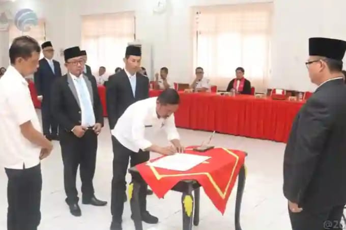 Wali Kota Gunungsitoli, Sowa’a Laoli, S.E., M.Si., bersama Wakil Wali Kota, Martinus Lase, S.H., melantik dan mengambil sumpah/janji empat Pejabat Pimpinan Tinggi Pratama di lingkungan Pemerintah Kota Gunungsitoli, bertempat di Ruang Rapat II Kantor Wali Kota Gunungsitoli, Rabu 22 Oktober 2025.